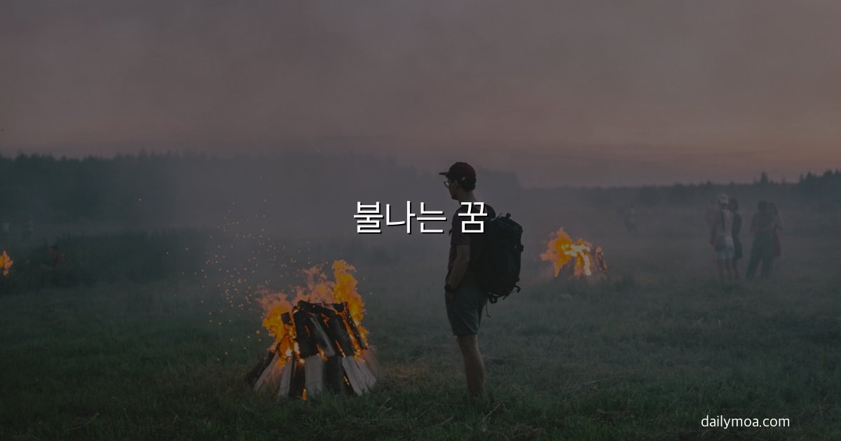 - 변화에 대한 기대 또는 두려움: 인생의 전환점 앞에서 불나는 꿈을 꾸는 경우가 있습니다. 변화를 두려워하거나 새 출발에 대한 기대가 담겨 있을 수 있습니다.